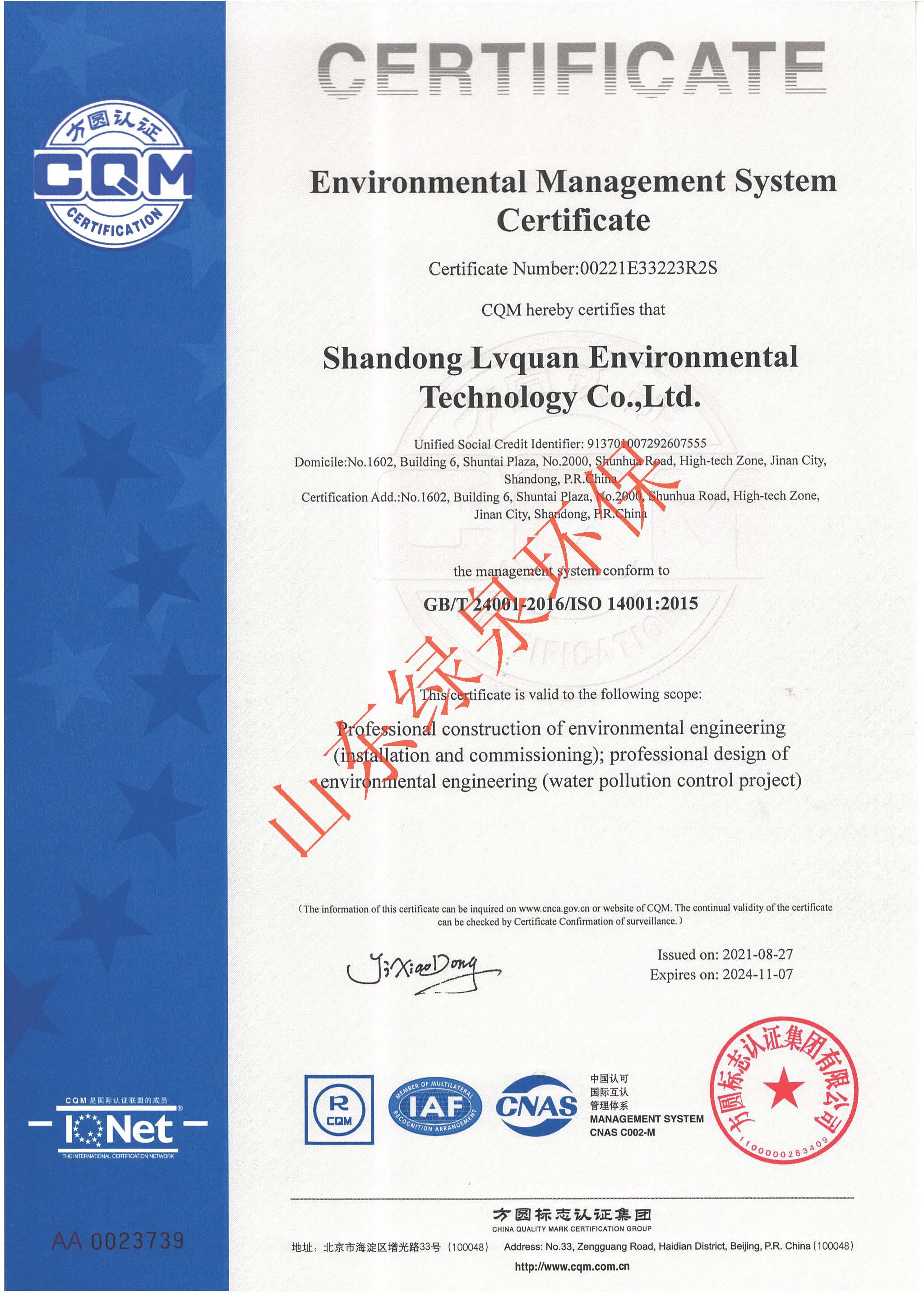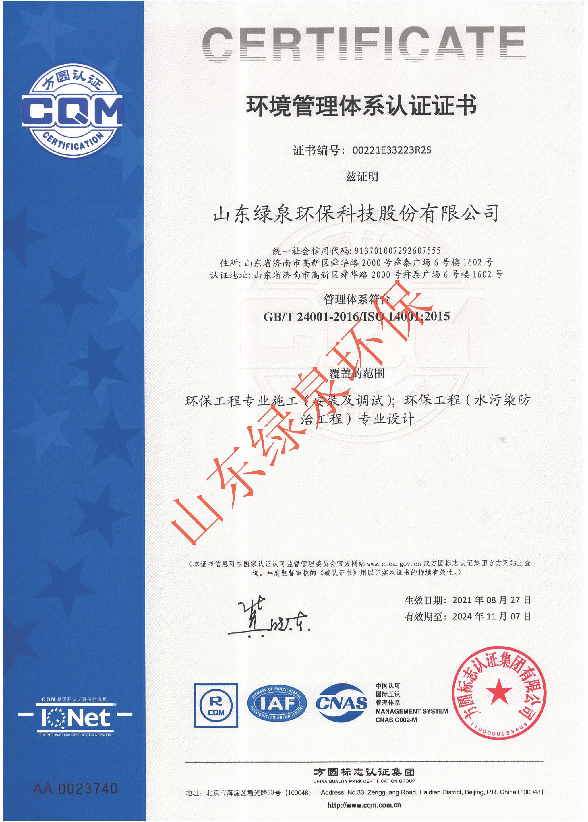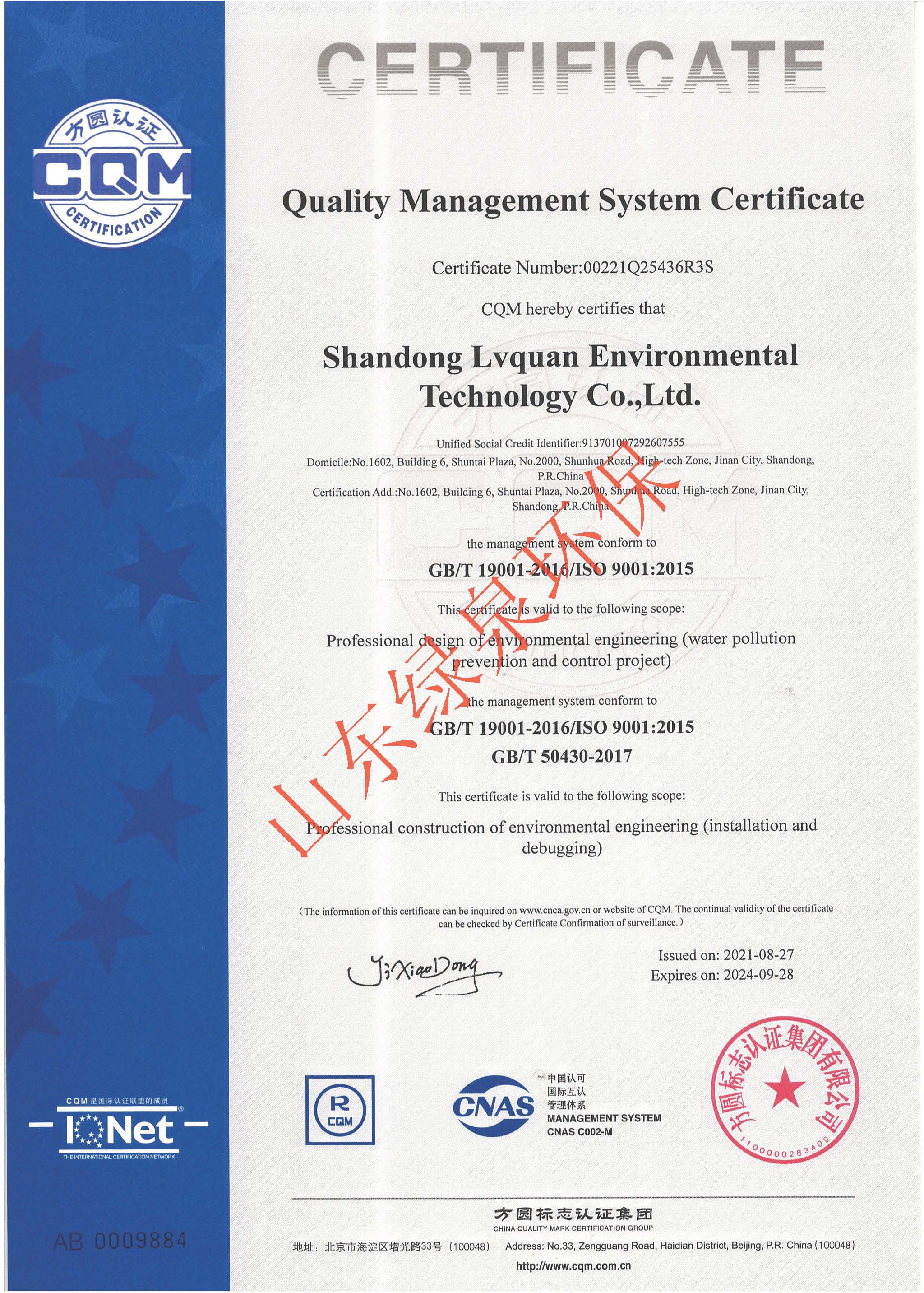 環保工程承包壹級/市政公用工程總承包貳級資質