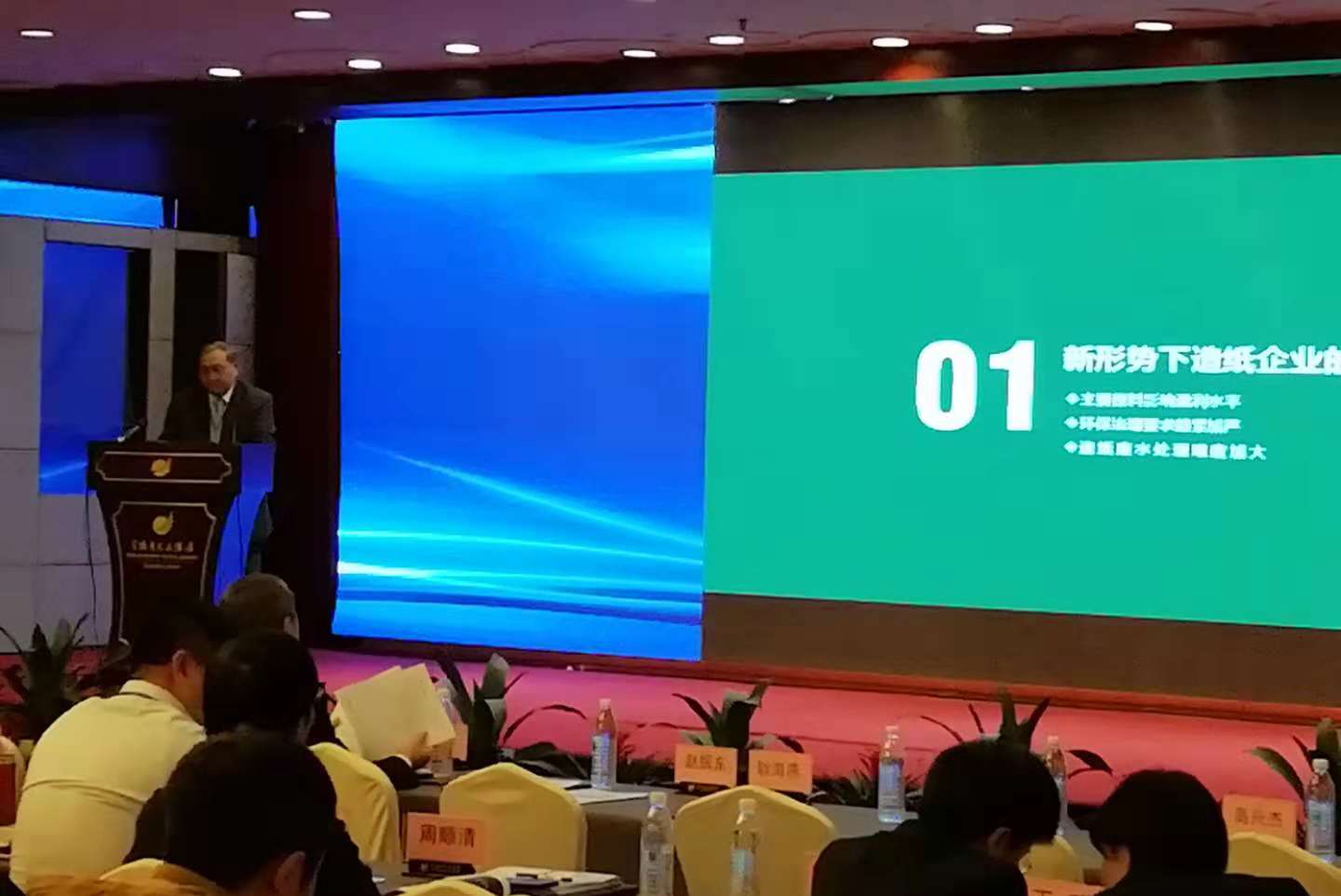 會(huì)議中,我公司董事長周煥祥研究員發表了“精準施策 科學實現廢紙造紙廢水(shuǐ)低(dī)成本運行(xíng)”的主題演講,針對當下造紙行(xíng)業的痛點問題以及目前山(shān)東省排放标準提高(gāo)對造紙企業廢水(shuǐ)處理(lǐ)産生(shēng)的影(yǐng)響等進行(xíng)了立體(tǐ)、全面、深刻的剖析。針對這些(xiē)問題,周總為(wèi)業內(nèi)同仁分享了我公司近年來(lái)在造紙行(xíng)業廢水(shuǐ)處理(lǐ)領域的成功經驗,提出了如何在利用現有(yǒu)設施的前提下,既能可(kě)靠達标,又能實現低(dī)投入、低(dī)成本運行(xíng)的具體(tǐ)措施。周總的精彩發言受到了與會(huì)各位嘉賓、專家(jiā)、造紙企業負責人(rén)的一緻好評與肯定,紛紛表示希望與我公司有(yǒu)進一步的交流與合作(zuò)。