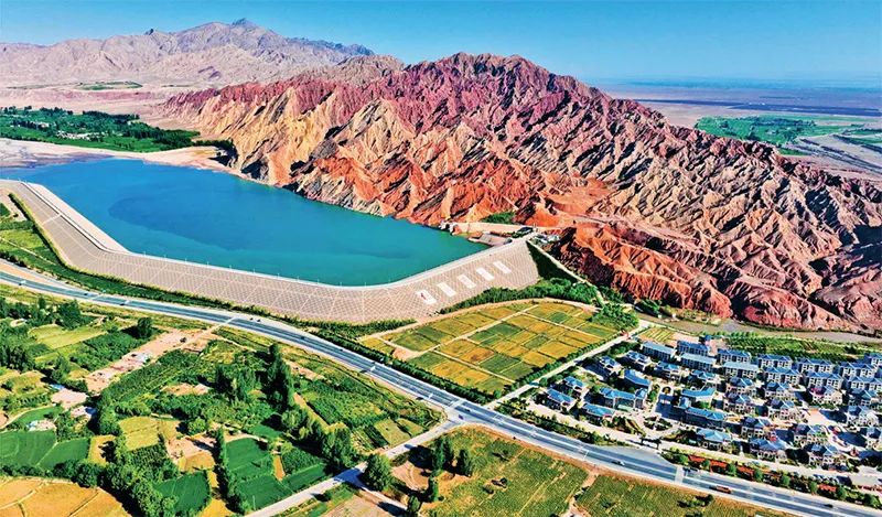 黨的十八大(dà)以來(lái),經過頑強努力,我國天更藍(lán)、地更綠、水(shuǐ)更清,萬裏河(hé)山(shān)更加多(duō)姿多(duō)彩。圖為(wèi)2023年6月15日,甘肅省張掖市臨澤縣的紅山(shān)灣水(shuǐ)庫與丹霞美景構成一幅“戈壁水(shuǐ)鄉”生(shēng)态和(hé)諧絢麗(lì)多(duō)彩的畫(huà)卷。人(rén)民圖片 王将/攝