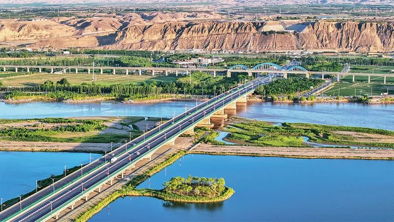 新時(shí)代生(shēng)态文明(míng)建設的成就舉世矚目,成為(wèi)新時(shí)代黨和(hé)國家(jiā)事業取得(de)曆史性成就、發生(shēng)曆史性變革的顯著标志(zhì)。圖為(wèi)2023年6月13日,位于甯夏中衛的黃河(hé)公路大(dà)橋、黃河(hé)鐵(tiě)路大(dà)橋與黃河(hé)濕地交相輝映,美麗(lì)如畫(huà)。人(rén)民圖片 柴更利/攝