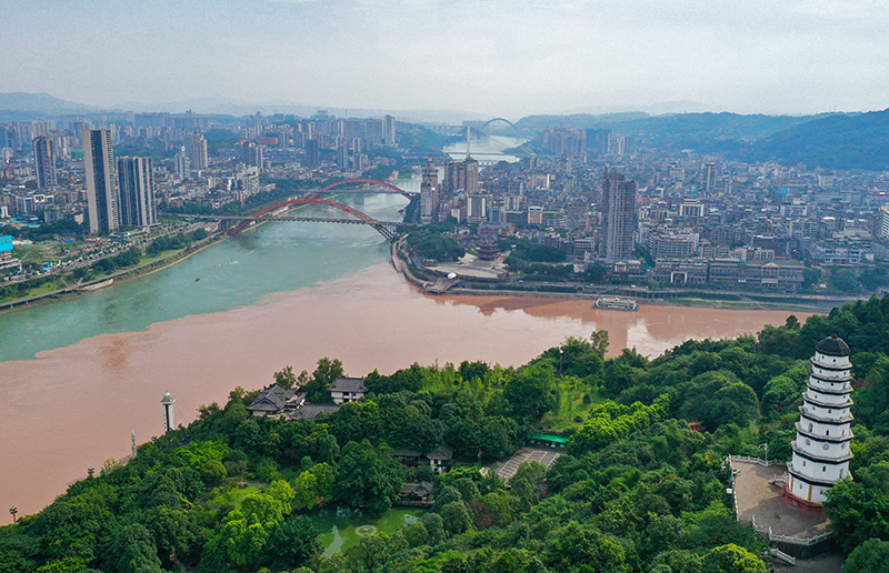 四川省宜賓市三江口景色(2022年6月30日攝,無人(rén)機照片)。新華社記者 王曦 攝