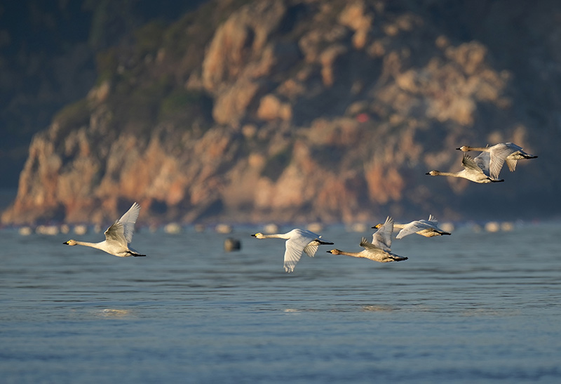 一群天鵝飛過閩江河(hé)口濕地上(shàng)空(kōng)(2023年1月31日攝)。新華社記者 魏培全 攝