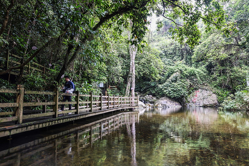 遊客在海南熱帶雨林國家(jiā)公園五指山(shān)片區(qū)的仙女潭遊覽(2022年5月17日攝)。新華社記者 張麗(lì)芸 攝
