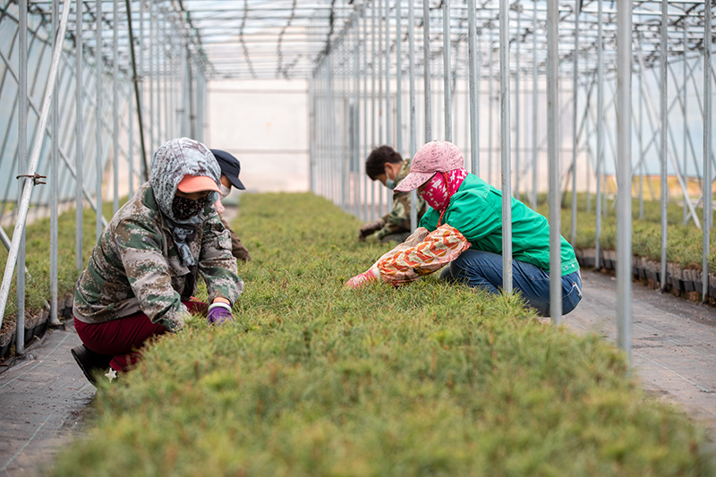 在黑(hēi)龍江伊春森(sēn)工集團紅松種苗繁育基地,工作(zuò)人(rén)員在養護輕基質紅松苗(2023年5月20日攝)。新華社記者 張濤 攝