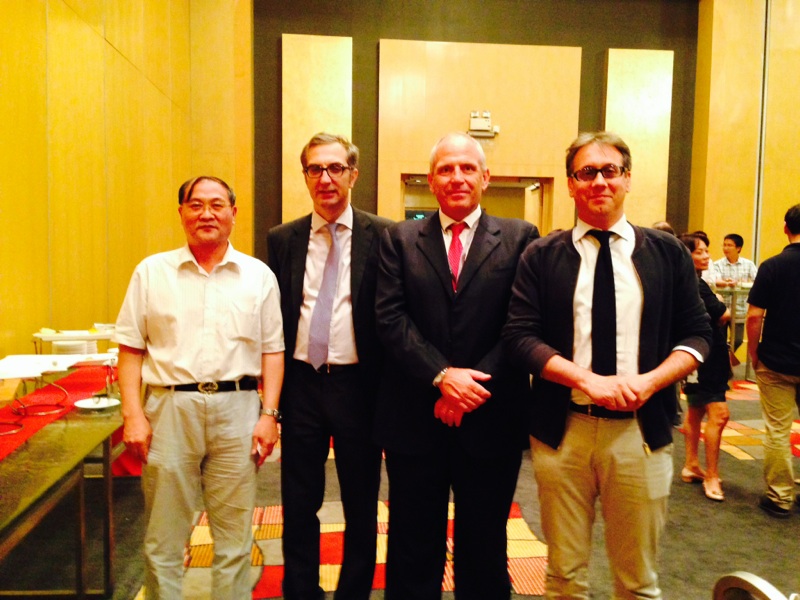會(huì)議結束後,意大(dà)利代表團設晚宴熱情的招待了參會(huì)的國內(nèi)企業。宴會(huì)結束後我司總經理(lǐ)與意大(dà)利駐華大(dà)使等官員合影(yǐng)留念。